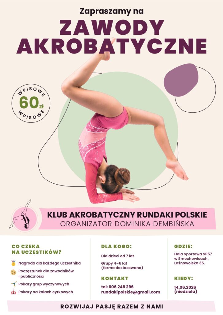 Uczestnicy zostaną podzieleni na grupy według wieku i poziomu zaawansowania, aby zapewnić komfort i sprawiedliwą rywalizację. Dzieci w wieku 4–6 lat wezmą udział w dostosowanej do nich formule z elementami toru przeszkód i zadań sprawnościowych, natomiast dzieci od 7. roku życia wystartują w zawodach gimnastycznych. Grupa wyczynowa zaprezentuje się w części pokazowej.